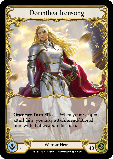 Post-Magic, I played some Netunner, and I’ve played Hearthstone at varying frequencies since beta. But, I never really thought I would get back into a physical CCG because they’re such a time sink, especially upfront. And I also have a real problem with wanting to collect all of the old rare cards, which is financially daunting with any established game. Then COVID happened, and I suddenly had a lot of time on my hands and all of this money I wasn’t spending on travel, bars, restaurants, clothing, etc. While perusing the Team Covenant podcast randomly (I hadn’t really frequented their content since Netrunner died), I happened upon their Flesh and Blood video, perked up at Dorinthea (I’ll forgive the boob-plate), was really intrigued by the design of starting at your most powerful state and getting weaker as the game progressed (which seemed fairly novel in a CCG), and ultimately said, “what the hell, I’m in!”