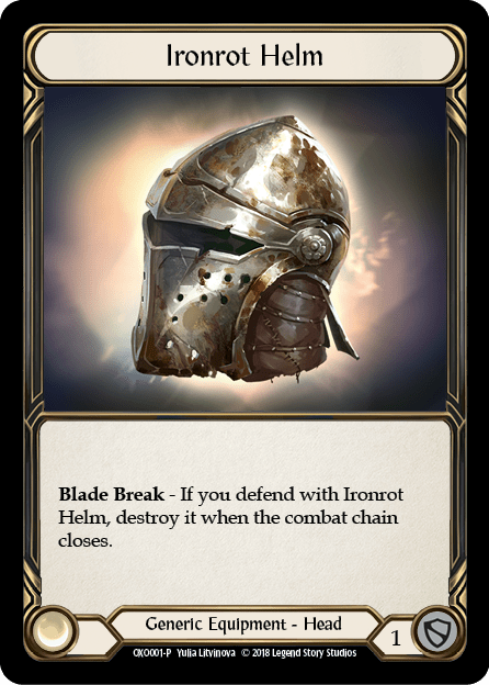 Before we get started on the promos proper, let’s take a quick look at these oddballs. LSS released artist proof copies of the Ironrot gear in advance of the game launch proper. You can read a bit more about them here. I won’t rehash the interesting tidbits of trivia that LSS provides on these, but I will say that they seem to be either exceedingly rare or the player base doesn’t have a high level of interest in them, which is not uncommon with artist proofs.