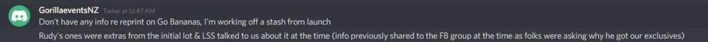 Need more? Well here is Mighty Ape telling the FAB discord that they have a “big lot” of copies that they intended to give out in the US market in addition to more to give out as promotions for future box orders. I also asked if there would be an additional printing when the eventually ran out, and the person running the account had no info on any potential future prints, but noted they’re still using their initial stack.