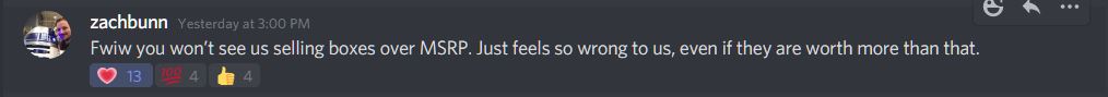 As an aside, I suppose “LGS” is somewhat of a tricky term here, because while Team Covenant has certainly worked to maintain a retail space that offers a unique experience to their local community, their footprint in the wider online space of tabletop is much greater. But, the same could be said to varying degrees of any store operating a digital storefront, which seemed nearly essential, even before COVID. The real distinction that’s worth making here is differentiating stores that offer a physical play space for their local community from those who function more as warehouses or traditional retail outlets.