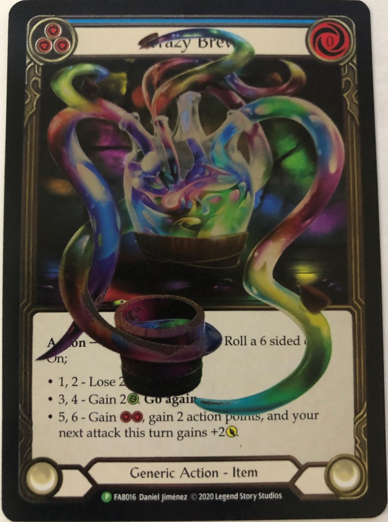 What I’m getting at here is that there are a lot of reasons to be suspicious that Crazy Brew will maintain its current prices in coming months as supply grows, and the long term prospects on the scale of a few years are kind of grim. I could of course be wrong about this. Maybe FAB collectors are fundamentally different than Magic collectors in terms of what cards appeal to them, but I remain skeptical. As a final point for your consideration, the Team Covenant Scar for a Scar promo is still selling at $300-350, it’s almost certainly rarer than CF Crazy Brew, and it’s an iconic highly playable card. If you were committed to spending hundreds on promos, that seems like a much smarter long-term pickup.