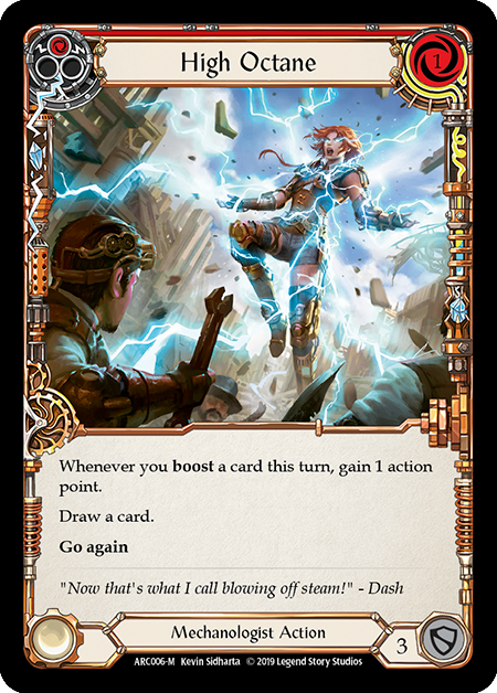 Arcane Rising is my favorite set so far. Part of that is mechanical –I’m a sucker for weird fiddly classes, and that’s pretty much all the classes in ARC. ARC also added a bunch of strange stuff to the world, what with the steampunk Metrix elements, the monster in the Pit, and the horrors of the Demonastery and made many people wonder how all of these disparate areas fit together. ARC also felt a lot more like a set that wanted to develop characters. Assuming you didn’t interact with FAB’s fiction beyond the cards themselves, what do you know about Dorinthea? Well, she seems like a pious knight and maybe used to be a blacksmith. Compare that to what we know about Dash from three cards: