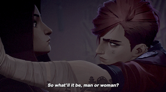 When we’re considering queer coding, it should be understood that characters who are textually queer and have these traits are not themselves queer coded. So, if we give a woman a lot of the same physical characteristics we discussed with Briar, like short hair, tattoos, a muscular build, and an eyebrow slit and we have her doing something like this: