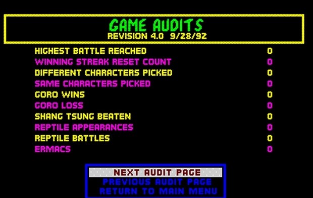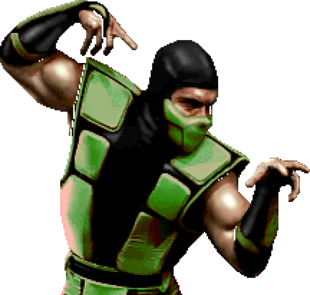 Ermac: Ermac, at least in his original appearance, is one of the rainbow ninja palette shifts based off Scorpion and Sub-Zero that populated the early MK games. Ermac is especially cool because he’s a kind of reverse Easter egg: the community hypothesized him, and then Midway (who was the MK Developer before they went bankrupt) created the character because of fan theories rooted in very clever but incorrect hunts for secrets. “Wait,” you might ask, “how does that work?” Well, contrived narrative device, thanks for asking that important question! You see, if you were looking at the audit menu in an early arcade release of the original Mortal Kombat the word “ERMACS” appears right below “Reptile Battles” which to early secret sleuths seemed to imply that there might be another hidden character in addition to Reptile. In reality “ERMACS” was a compounding of “Error Macro,” which was just a macro to catch errors.